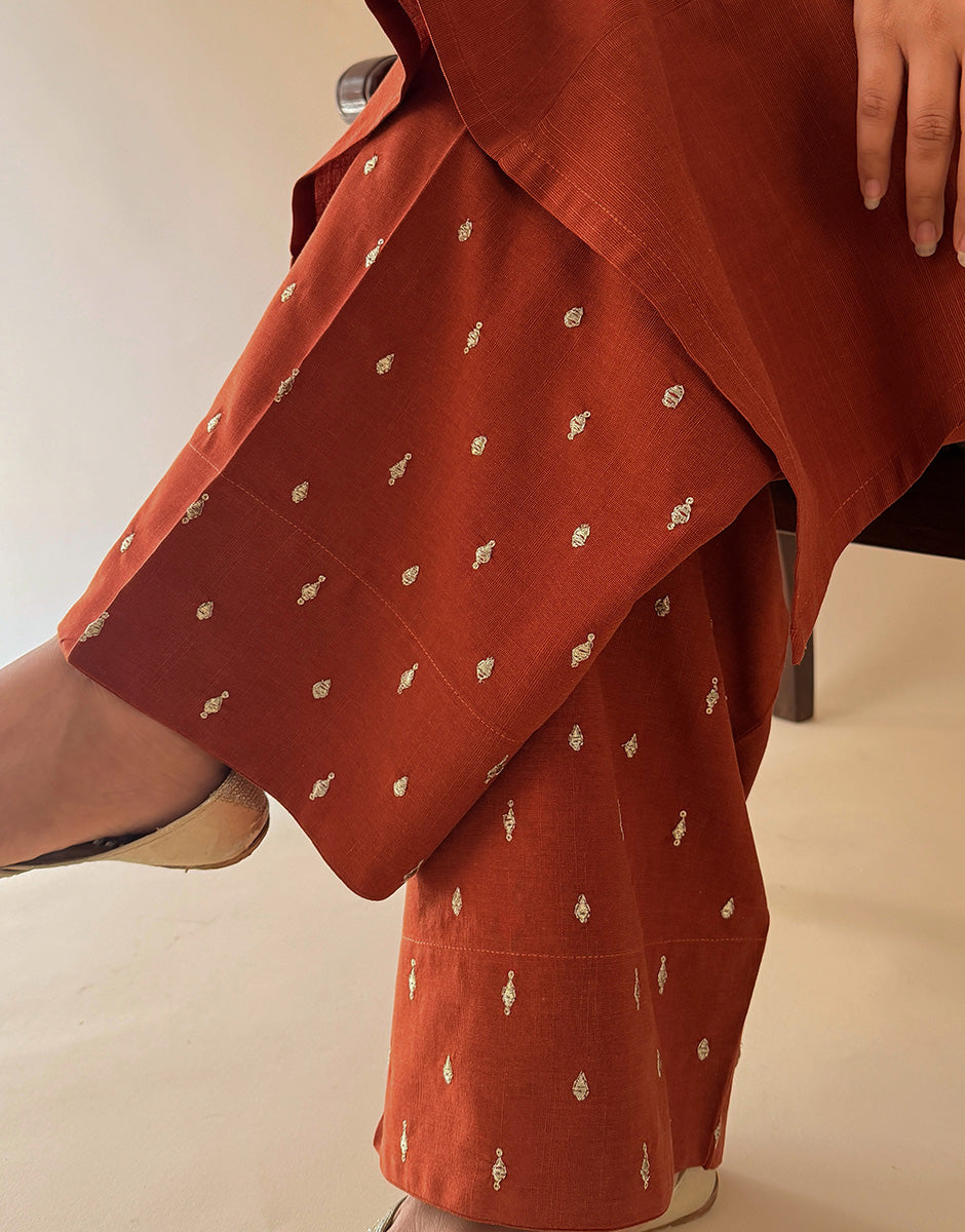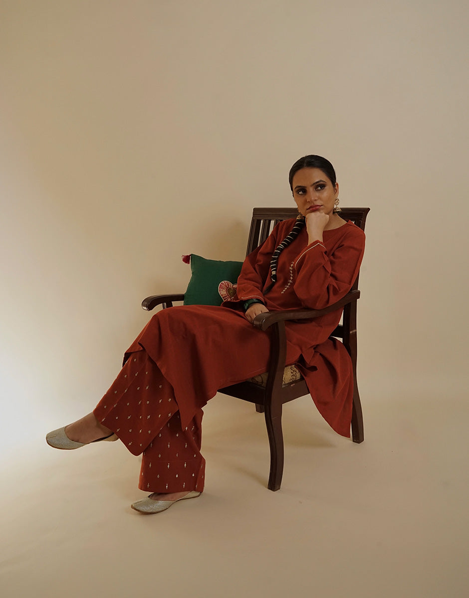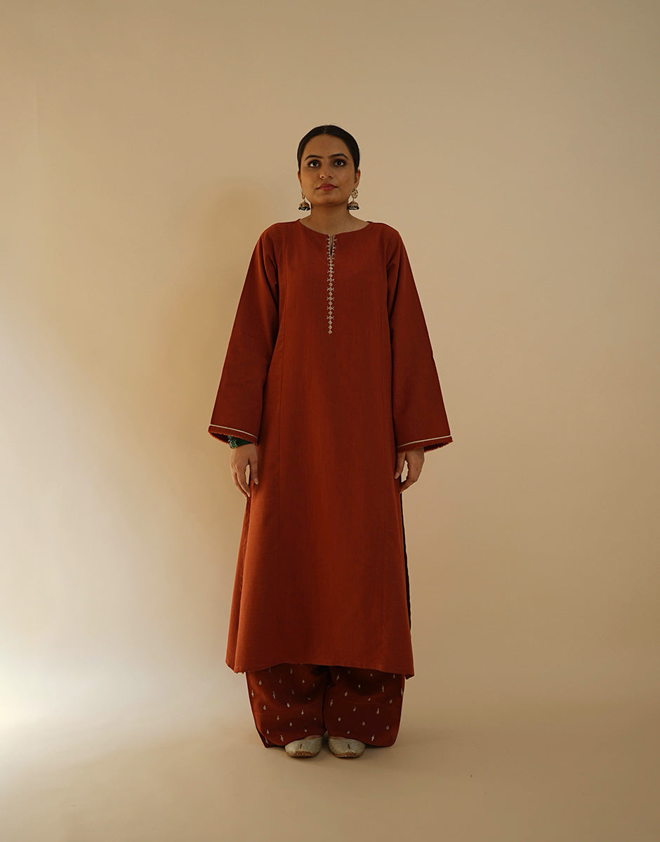 Long A line kurta with wide leg shalwar